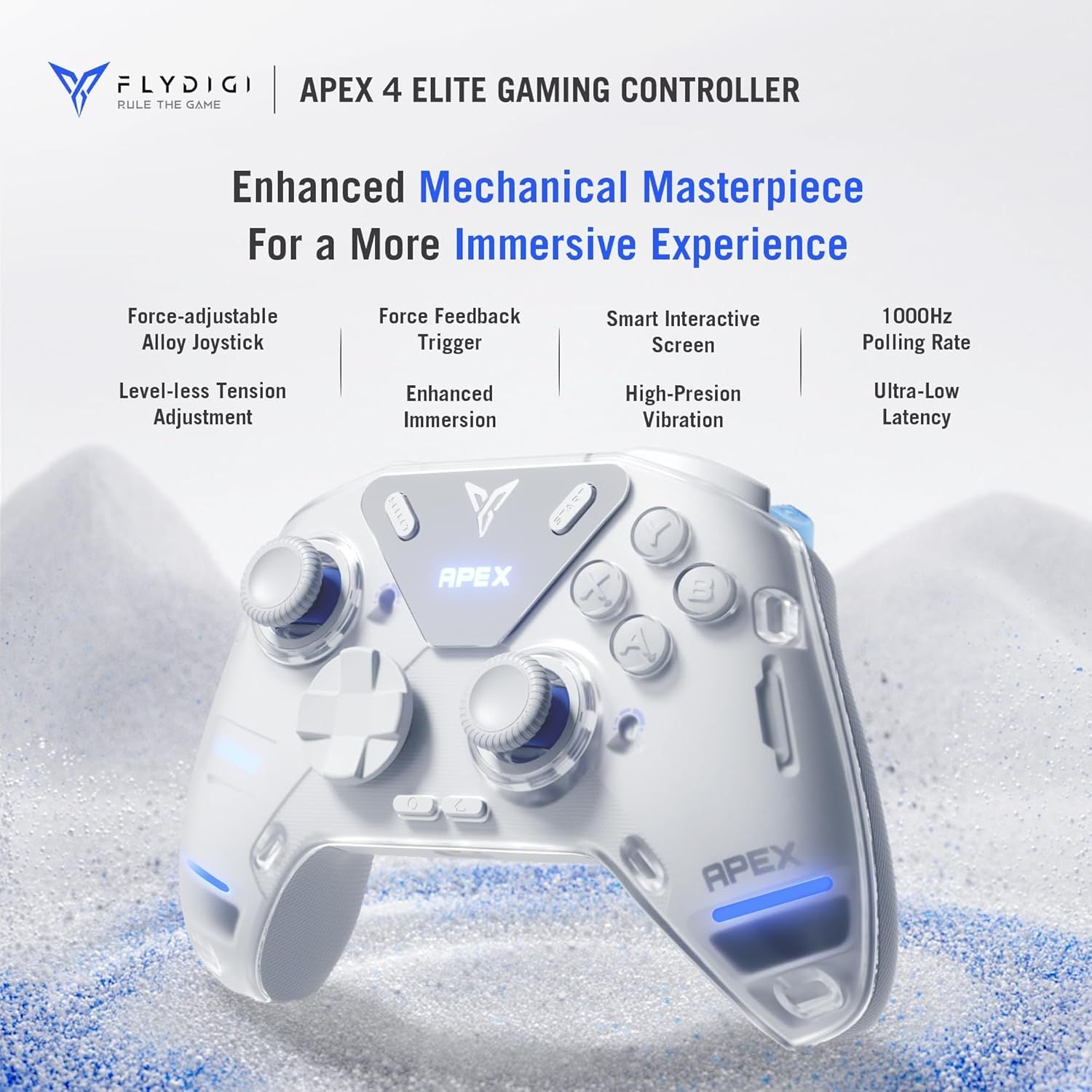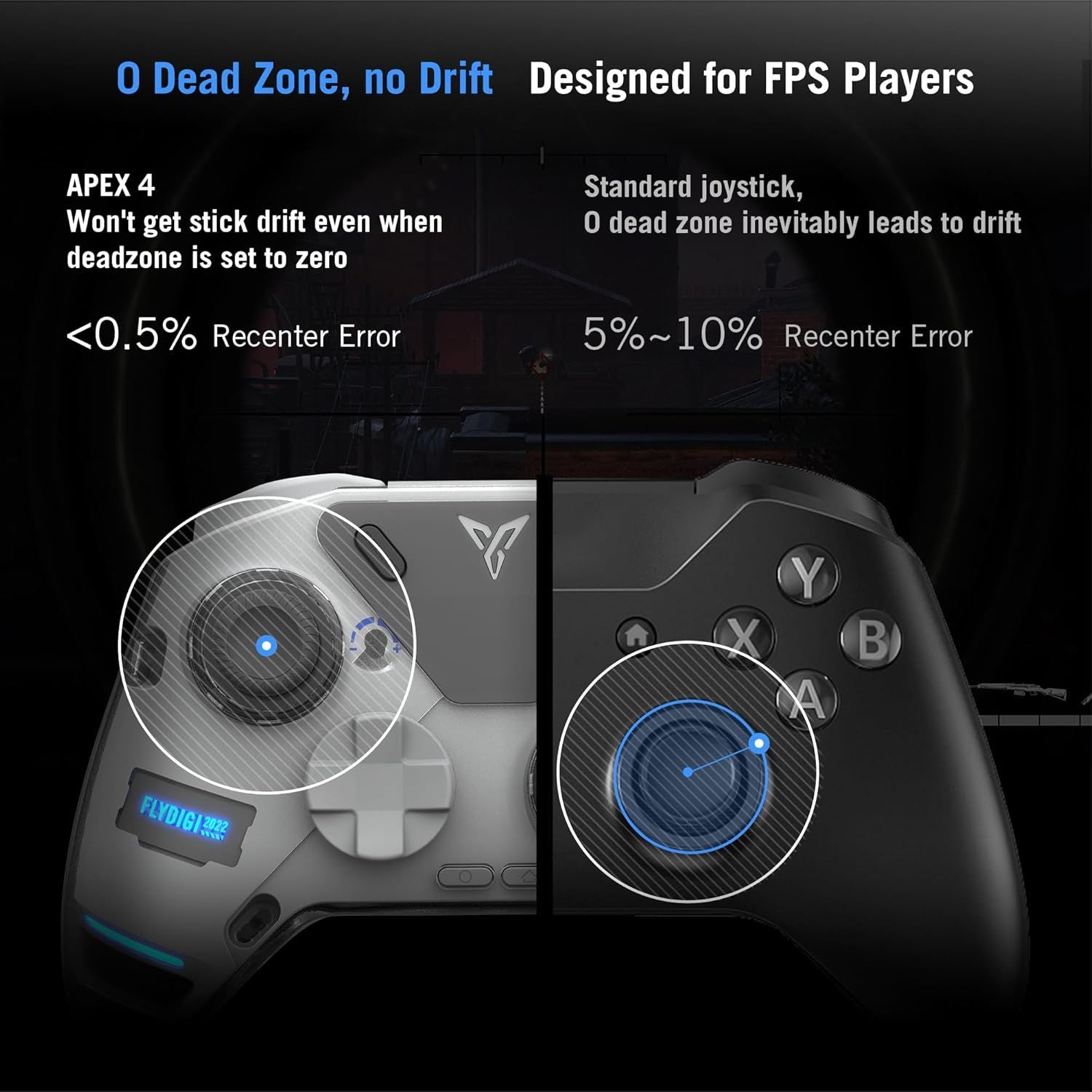 O Flydigi Apex 4 Wireless Controller é um controle gamer premium projetado para jogadores que exigem precisão extrema, resposta imediata e personalização avançada. Com taxa de sondagem de 1000Hz, conectividade multiplataforma e tecnologias mecânicas de alto desempenho, o Apex 4 entrega uma experiência competitiva real para PC, Nintendo Switch, Android e iOS.