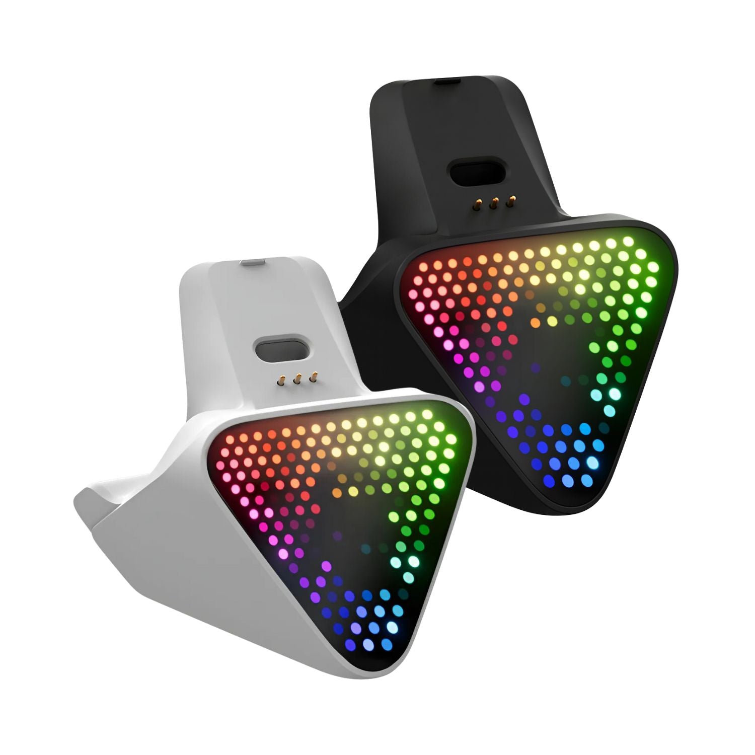 Além de ser uma dock de carregamento, a Flydigi 2 Pro também é um acessório de estilo. Seu diferencial está na tela pixel RGB, que permite personalização de iluminação e efeitos, adicionando um visual moderno e tecnológico ao seu ambiente.